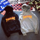 新款秋冬欧美街头男女情侣款火焰帽衫嘻哈摇滚滑板抓绒卫衣宽松