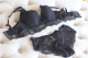 欧美黑色碎花聚拢蕾丝内衣单排扣性感美背绸缎文胸套装