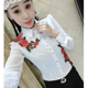 欧洲站2017春装新款修身刺绣花朵衬衫女长袖翻领白色衬衣显瘦上衣