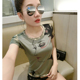 欧洲站时尚个性烫金印花T恤女短袖手工镶钻亮片修身体恤花色上衣