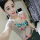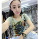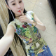 欧洲站时尚性感印花烫钻圆领T恤女短袖夏季新款修身花色体恤上衣