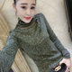 欧洲站春秋加绒网纱打底衫显瘦女装修身高领T恤衫性感蕾丝小衫潮