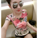 欧洲站女装时尚个性印花圆领T恤女短袖夏季修身显瘦花色上衣潮装