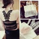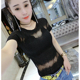 欧洲站女装镂空短袖圆领T恤2017夏季性感透视网纱修身打底上衣潮