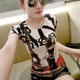 欧洲站潮女装时尚个性印花圆领T恤女短袖修身花色半截袖打底上衣