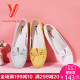 意尔康女鞋2017春季新款豆豆鞋蝴蝶结真皮驾车透明软底平底孕妇鞋