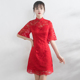 敬酒服新娘旗袍2017新款夏季红色短款显瘦中式结婚礼服女时尚短袖
