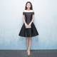 宴会晚礼服短款2017春夏季新款一字肩黑色主持小礼服连衣裙女聚会