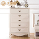 千品雅欧式五斗柜 韩式象牙白色实木斗柜子简约烤漆 田园柜橱