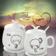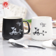 宝发陶瓷杯 卡通简约情侣马克杯子一对 新骨瓷牛奶水杯带盖带勺