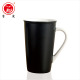 宝发陶瓷杯子 创意新骨瓷水杯套装 550ML简约黑色马克杯带盖带勺