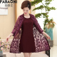 2017中老年新款春装中袖连衣裙两件套妈妈装背心蕾丝中长款裙子