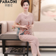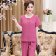 中老年夏季新款妈妈装短袖上衣T恤绣花透气舒适棉麻两件+裤子套装