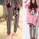 韩国代购东大门秋季新款韩版卡通修身显瘦条纹刺绣外穿打底裤女裤