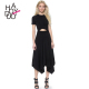 Haoduoyi2017春夏新款不规则中长款修身显瘦性感镂空黑色连衣裙女