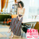 长裙套装女夏2017新款一片式半身裙两件套系带雪纺背心连衣裙无袖