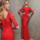 2017春季新款高贵优雅气质一字肩晚礼服新娘敬酒服公司年会宴会服