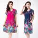 新款韩版大码中老年连衣裙圆领套头中长款加肥加大妈妈装短袖夏装