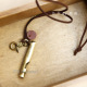 复古装饰长口哨项链古铜哨子吊圆皮长款毛衣链男女可戴中性项链