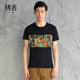 初善原创设计男装纯棉花卉短袖印花T恤男 文艺休闲修身撞色短D269