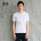 初善原创夏季纽扣装饰纯棉短袖T恤男 文艺不规则下摆修身白色D272