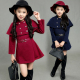 童装女童长袖连衣裙套装春秋装儿童呢子披肩公主裙女童冬裙两件套