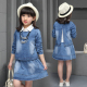 童装女童2017春秋装韩版套装女中大童牛仔长袖连衣裙两件套