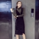 菲儿家欧美2016冬新大牌丝绒马甲+金丝针织衫修身半裙三件套套装