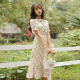 2017夏季新款文艺森女碎花短袖雪纺连衣裙收腰印花大摆长裙淑女裙