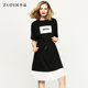 Zopin作品2017夏季简约休闲字母印裙子系带收腰拼接短袖连衣裙女