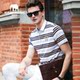 象王2016新款条纹棉短袖T恤男 翻领条纹中年商务绣花半袖男士T恤