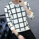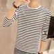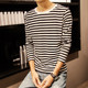 春季男士圆领长袖t恤青年大码黑白条纹修身T恤秋季上衣男装打底衫