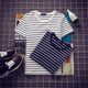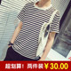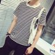 夏季男士圆领短袖T恤青少年韩版男生黑白条纹大码短袖体恤休闲t恤
