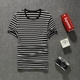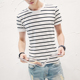 夏季男士圆领条纹短袖T恤修身男装衣服青少年潮流百搭半袖体恤衫