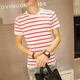 夏季男士圆领短袖T恤学生修身条纹男装半袖衣服韩版体恤打底衫潮