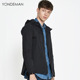 雅帝奴中长款连帽风衣男 2017春秋青年韩版修身外套男装上衣潮