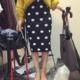 春秋复古大波点松紧腰毛线针织中长款包臀裙高腰圆点显瘦半身裙女