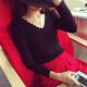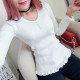 秋冬新款波浪V领套头毛衣女士长袖T恤内搭小衫修身打底衫女针织衫