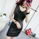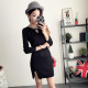 秋冬新款韩版领口镂空钉珠针织连衣裙女性感修身开叉中长款打底裙