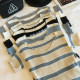 春夏新款韩版木耳边冰丝针织衫v领条纹短袖t恤女短款紧身显瘦上衣