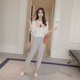 汤汀 2016夏季新款女裤薄款雪纺裤松紧腰哈伦设计带内衬九分裤