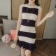 条纹鱼尾针织连衣裙秋季新款女装无袖中长款修身显瘦包臀套头显瘦
