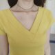 汤汀 黄色小短袖2016新款T恤大V领超弹力纯棉吸汗韩版潮学生