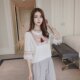 汤汀 夏季女装韩版三件套刺绣上衣吊带背心百褶雪纺阔腿裤套装