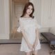 汤汀 2016夏季女装新款韩版蕾丝蝴蝶结连衣裙女修身显瘦中长款