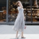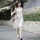 【介面原创女装】春夏季莫代尔修身气质白色复古中长款礼服连衣裙
