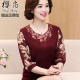 中老年女装春装针织衫纱袖T恤中年妇女妈妈装宽松夏装桑蚕丝上衣