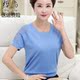 中年女士夏装短袖t恤大码桑蚕丝宽松上衣胖妈妈装针织纯色打底衫