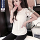 大码短袖t恤女夏胖mm宽松200斤2017新款蕾丝镂空圆领纯色雪纺衫潮
