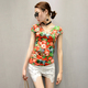 2017夏季新款纯棉花色短袖t恤女v领修身印花透气半袖体恤女潮